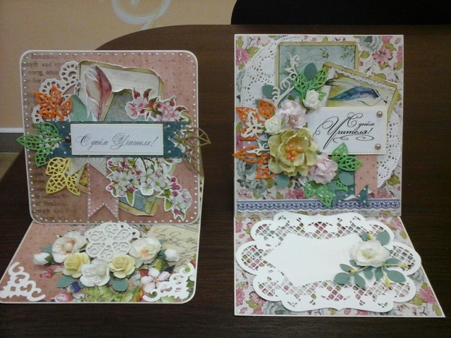 Открыточки-стоячки получились очень даже, с бумагой понравилось работать, закажу еще такой )))